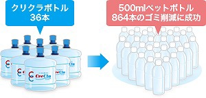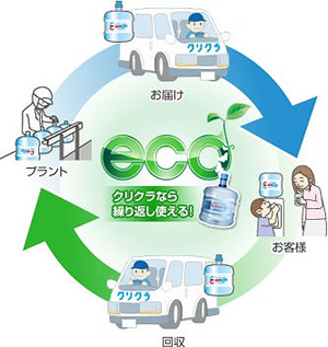 すでに多くの会社が社内でのペットボトル飲料やプラ製ストロー、スプーン、フォークの全廃を決めております。クリクラのボトルは、リターナルボトルとして毎回回収、再利用され、使い捨てプラスチックごみを一切出しません。国の機関やエコ活動に熱心な企業、個人様に幅広く支持されています。